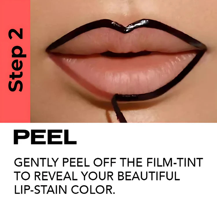 The formula may initially appear and apply a dark color, but once the tint film is removed, it will unveil the true shade.